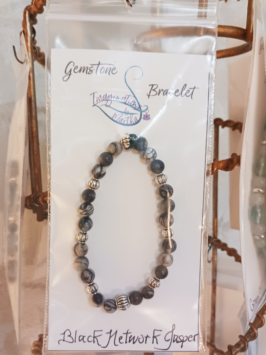 Bracelets made from gemstones and crystals on stretch cord. Sizes: X-Small 6″ – Small 6 1/2″ – Regular 7″ – Large 7 1/2″ – X-Large – 8″
